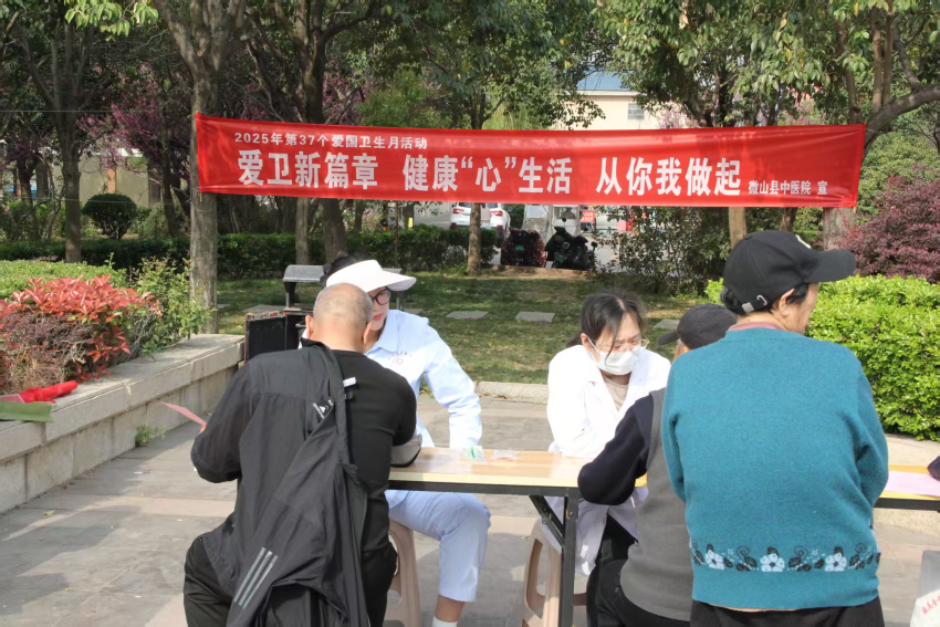 4月8日上午9时,以“爱卫新篇章 健康'心’生活”为主题的第37个爱国卫生月集中活动在苏园一村广场拉开帷幕。微山县中医院积极响应号召,组织医护人员深入社区,通过中医特色诊疗服务和健康科普宣教,为广大群众送上贴心医疗关怀,助力健康生活理念深入人心。